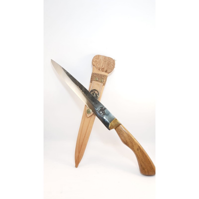 Cuchillo artesanal hoja de 24cm mango en madera con vaina de cuero
