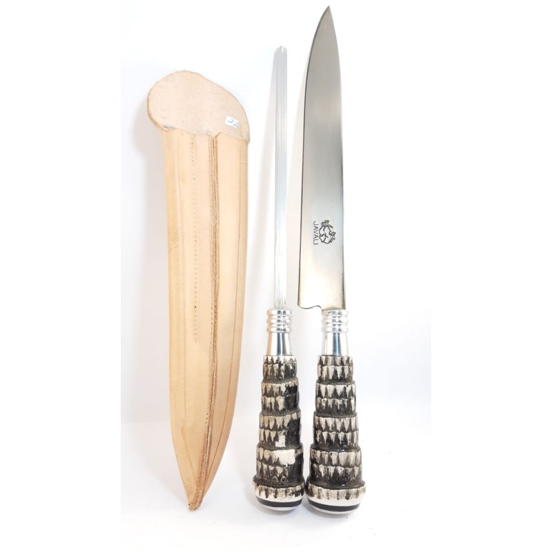 Conjunto de cuchillo artesanal hoja de 22cm con chaira y vaina de cuero