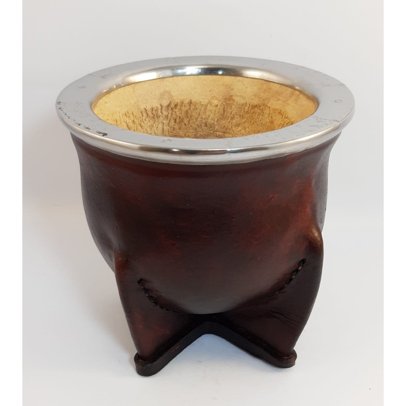 Mate de vuelo forrado en cuero emboquillado en acero cincelado