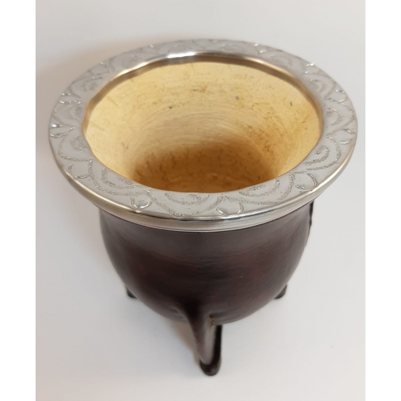 Mate de vuelo forrado en cuero emboquillado en acero cincelado