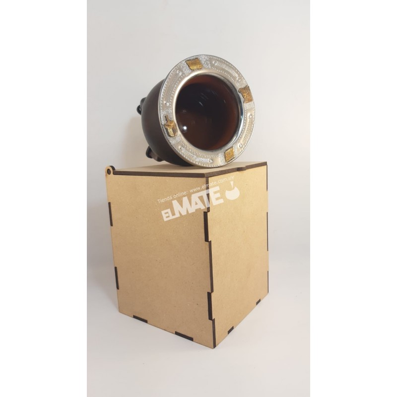 Mate camionero en cerámica con boquilla en acero sincelado con apliques