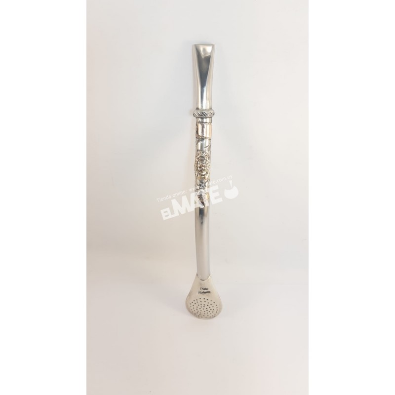 Bombillas anchas de plata con tres apliques en oro y escudo de Uruguay