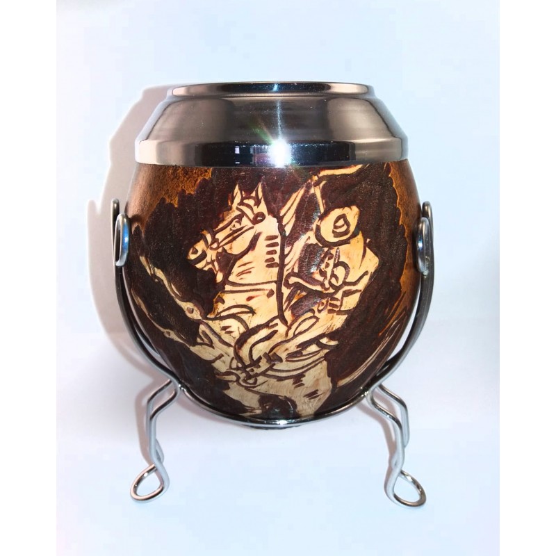 Porongo tallado emboquillado en acero con soporte de metal